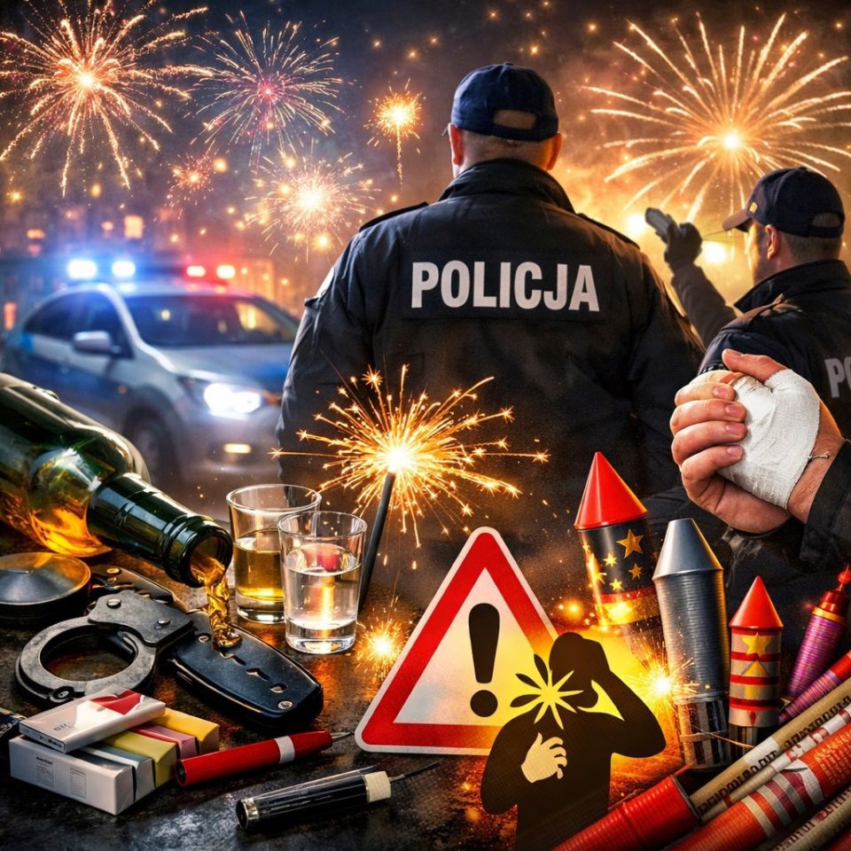 W razie zagrożenia życia, zdrowia lub pożaru natychmiast dzwoń 112. Policja apeluje o rozwagę i wzajemny szacunek, by Nowy Rok przyniósł radość bez wypadków.